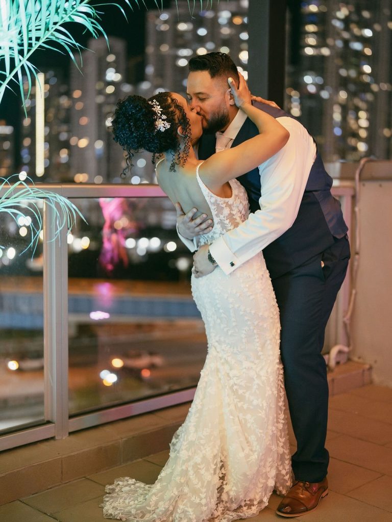 Truly, who wouldn’t want to say “I do” in a penthouse overlooking Miami? Karina and Claudio chose the breathtaking Penthouse at Riverside Warf for their wedding day, and the setting could not have been more unforgettable. High above the city, with endless skyline views stretching in every direction, their ceremony felt intimate, elevated, and incredibly romantic.