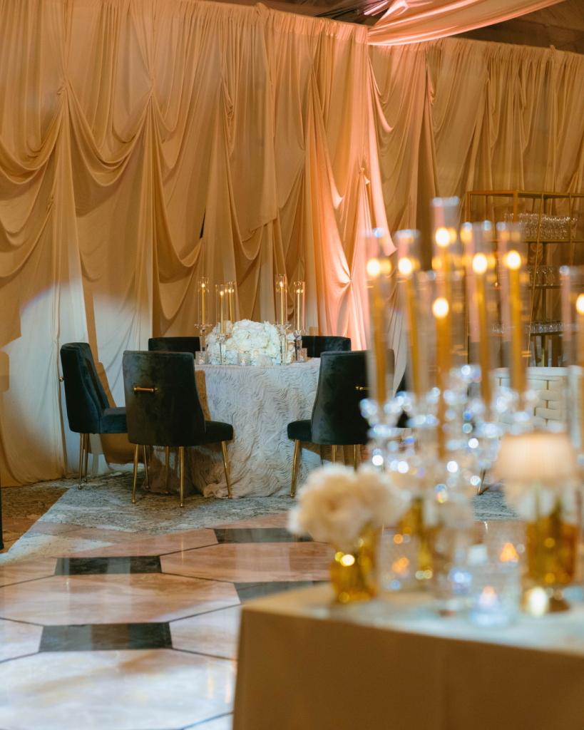 The design followed that same mindset. Rentals from Elements and Accents paired seamlessly with pieces from Nuage Designs, creating a layered, inviting atmosphere that encouraged guests to linger. Nothing felt overdone. Every element had a purpose and together they created a space that felt refined, comfortable, and true to the couple.