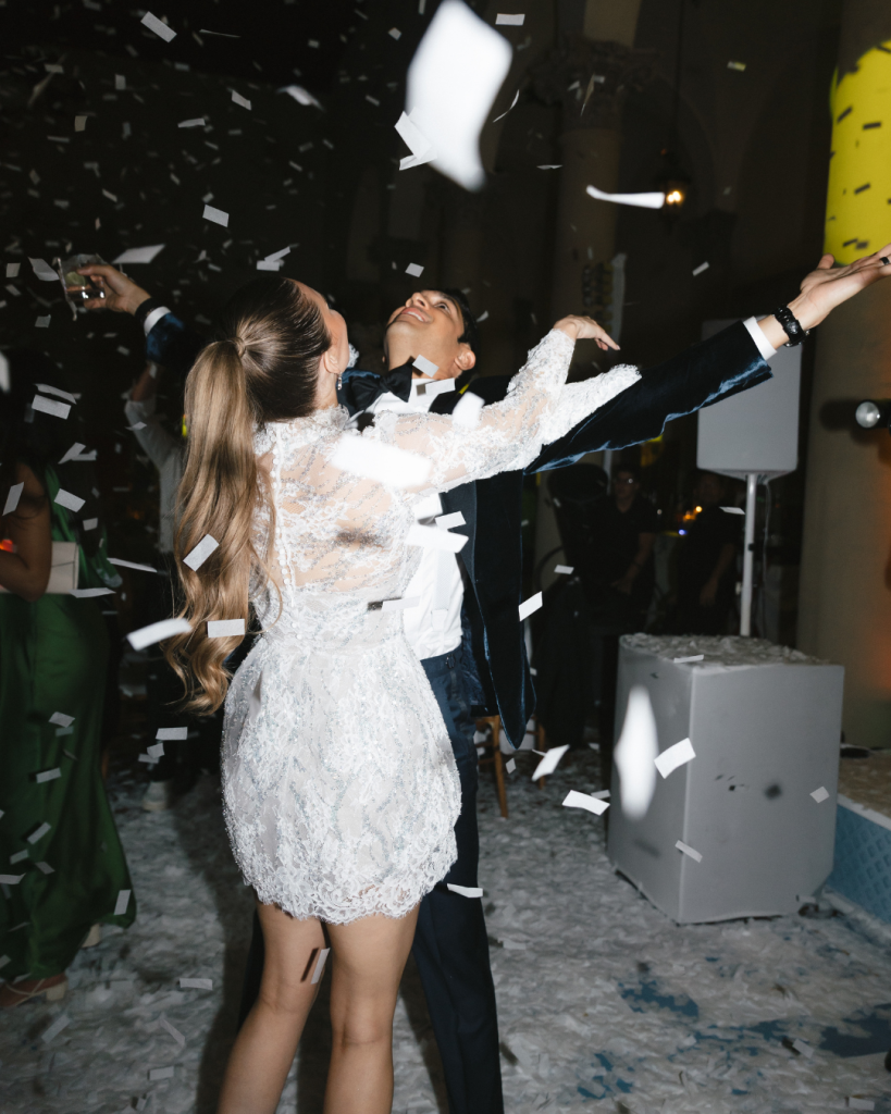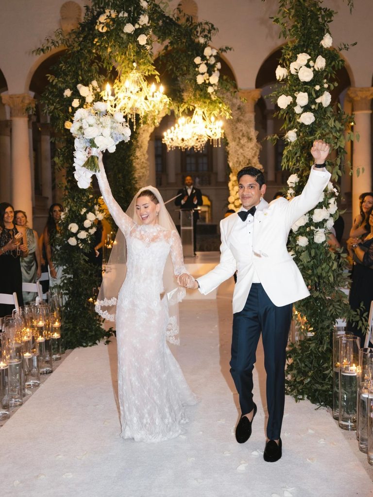 Their ceremony was transformed into a floral dream thanks to the breathtaking work of Petal Productions who lined the aisle with lush blooms and created a show stopping stage backdrop that guests couldn’t stop talking about. Romance, style, and beauty were present in every detail.