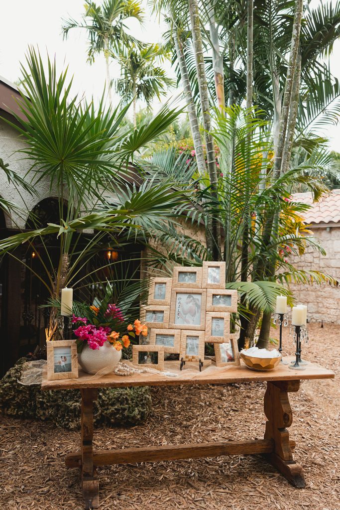 This venue is one of those places that stops you in your tracks. From the towering trees and tropical foliage to the historic coral rock walls and cozy, tucked-away ceremony spaces, every inch of it feels special. It’s like stepping into another world—peaceful, romantic, and very unique. McKinley and Jeffrey really leaned into the vibe, letting the natural beauty shine while adding in their own sweet touches: delicate florals, soft candlelight, and personalized signs that gave everything a warm, thoughtful feel.
