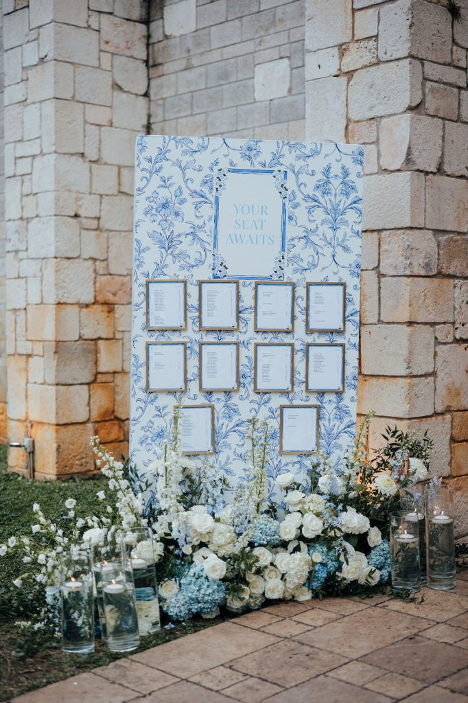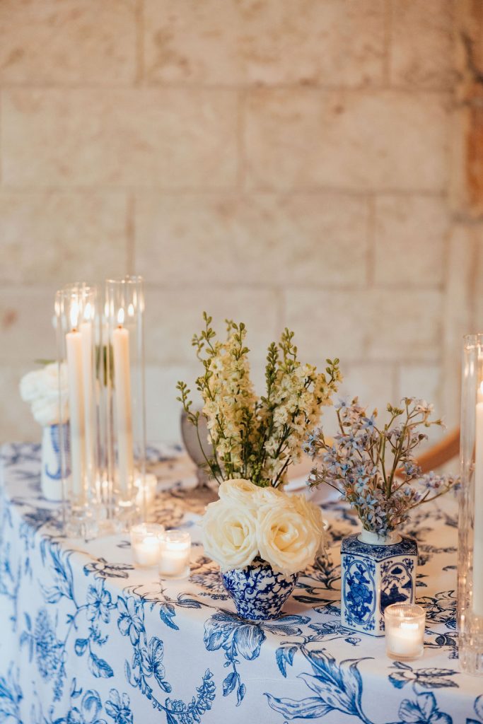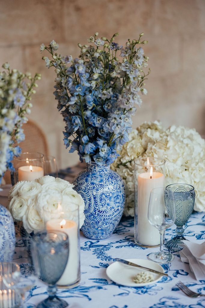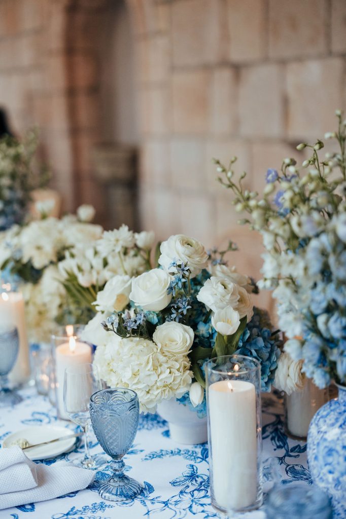 The florals by Petal Productions played a huge role in bringing everything together. The lush, blues and whites added beauty and life to every space that they were placed.