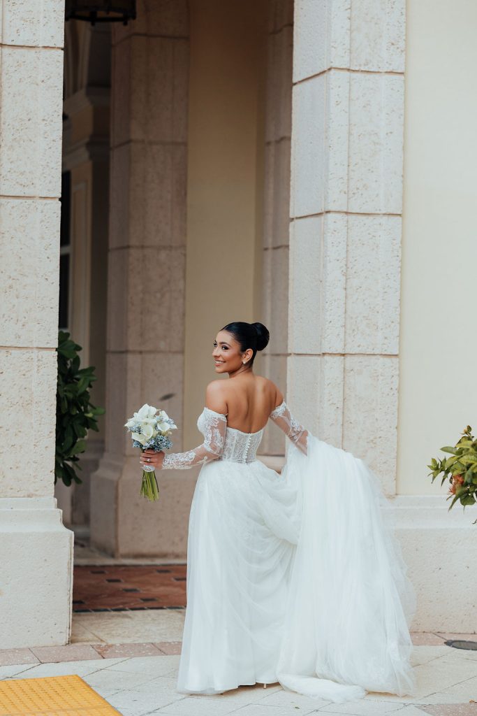 Natalie’s hair, styled by Empire Artistry Miami, tied everything together in a way that felt effortless. Known for offering both hair and makeup services, their team takes a really cohesive approach to bridal beauty. Her look was polished but still soft and natural—something that held up throughout the entire day. She chose to do a classic up do, keeping the look classy and bridal.