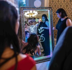 If your wedding vibe leans toward chic and elegant, the Mirror Booth is your match. Think of it as the modern guest-favorite. It is a full length interactive mirror that captures stunning portraits with studio-quality lighting. Guests can strike a pose, sign their photo, and instantly receive 4×6 glossy prints.