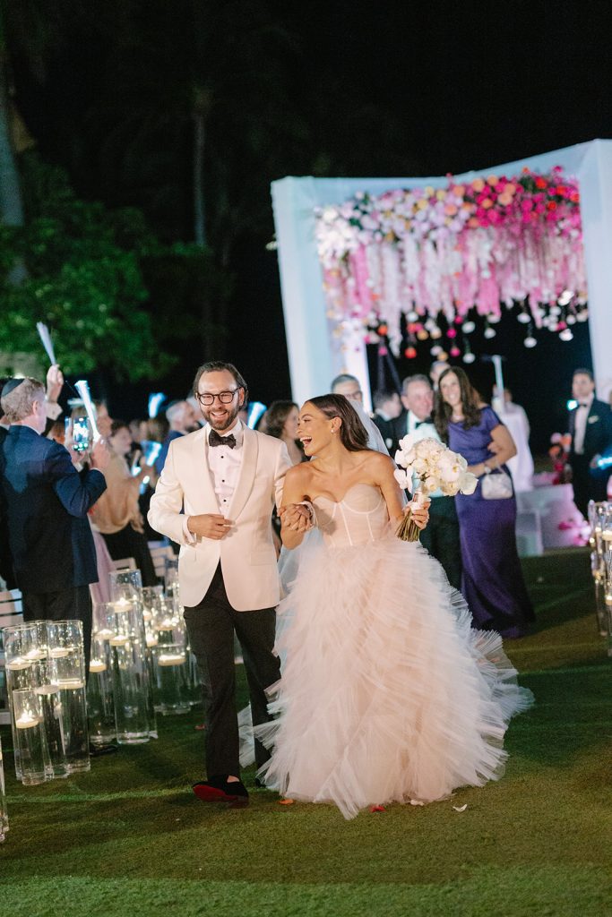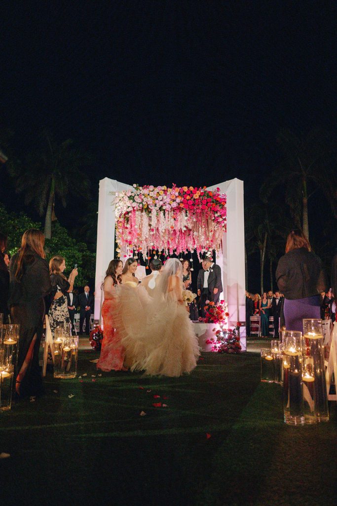 Saturday unfolded with meaningful Jewish traditions that honored the couple’s heritage and their shared values. Prior to the ceremony, Rachel and Josh participated in a tisch and bedeken, intimate moments rich with symbolism and emotion. Their ceremony was led by a rabbi from Temple Beth Am in Miami, the very place where their story began—adding another layer of significance to the day. Deeply traditional and filled with heart, the ceremony beautifully balanced reverence with celebration.