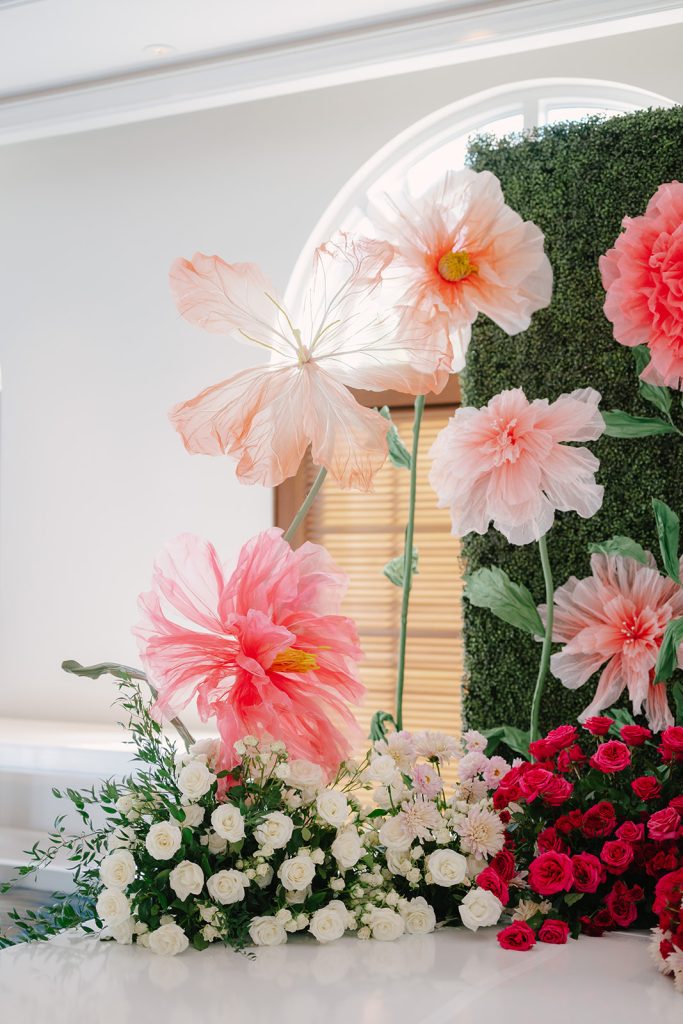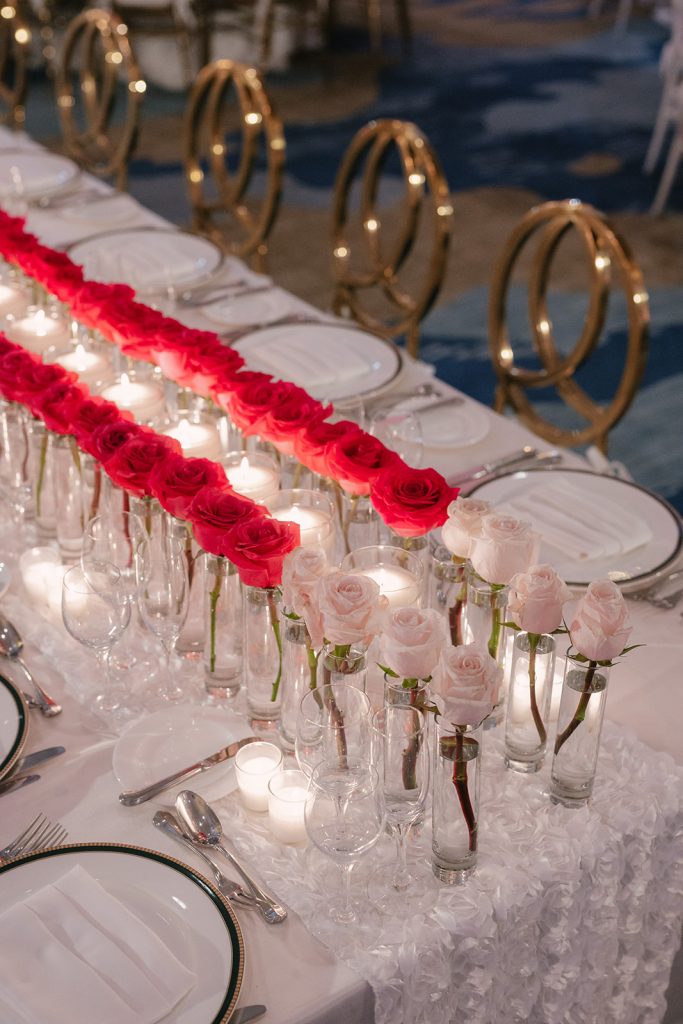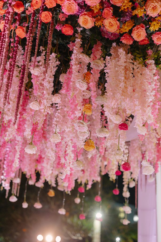 Bringing that vision to life was Petal Productions, whose floral design became a defining element of the day. Ombre floral installations flowed seamlessly through the celebration, echoing the natural progression of the sky as day turned to night. Each arrangement was elevated, artfully layered, and beautifully designed.