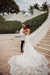 Emily and Justin embraced the relaxed, natural feel of the venue, letting its textures and soft Miami light shape the atmosphere of their day. A red vintage car added a fun, stylish touch that matched their vibe. It wasn’t just a photo op—it added personality to the celebration and made their day all the more memorable. And with a couple as effortlessly photogenic as these two, every frame was picture-perfect without even trying.