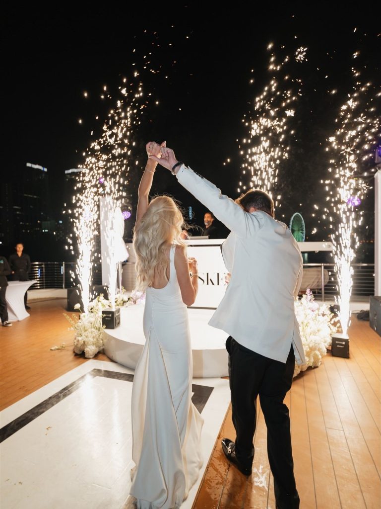 Sasha and Gabe’s wedding took celebration to a whole new level with a breathtaking yacht ceremony set against the sparkling waters of Miami. Surrounded by the ocean and framed by the city’s iconic skyline, the couple exchanged vows in a setting that felt both intimate and unforgettable.