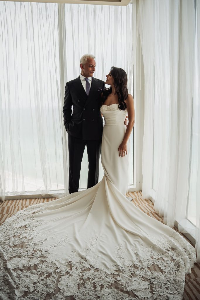 What a stunning day it was for the wedding of Shira and Ilon! Their celebration began in the elegant suites of Trump International Beach Resort Miami, where the couple got ready with panoramic views of the sparkling Atlantic Ocean. The resort’s luxurious setting was the perfect backdrop for the excitement and anticipation of the morning, offering not just comfort but an unforgettable Miami atmosphere. Shira and Ilon also chose to stay at the resort, making it both their pre-wedding retreat and post-celebration haven.