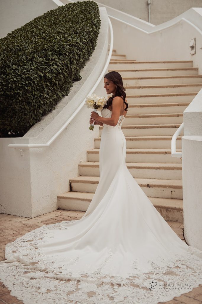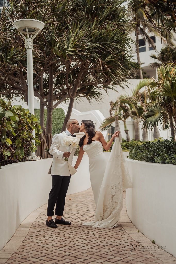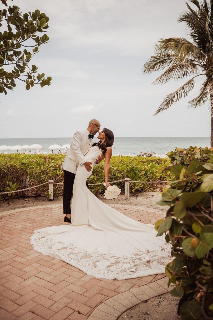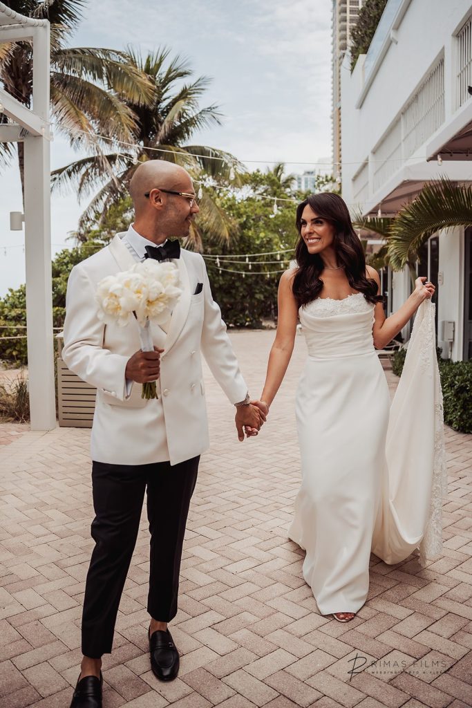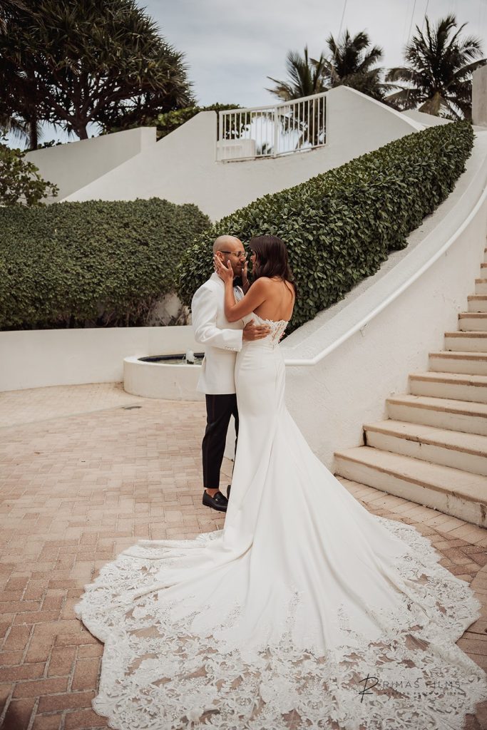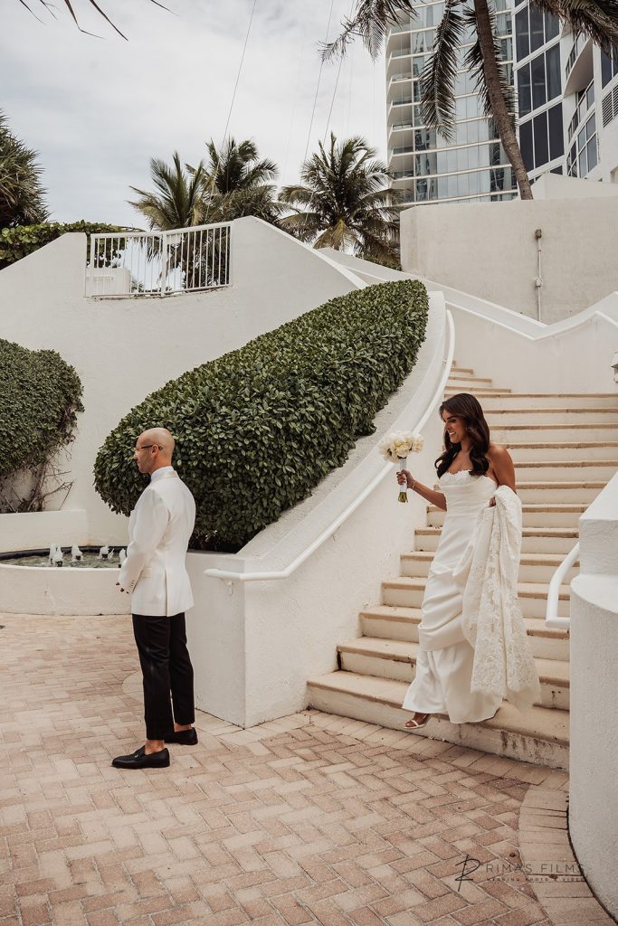 Before heading to their ceremony, Shira and Ilon shared their first look on the property. Shira made her entrance down the resort’s iconic outdoor staircase. With the ocean breeze and palm-framed skyline surrounding them, it was a breathtaking start to their day.