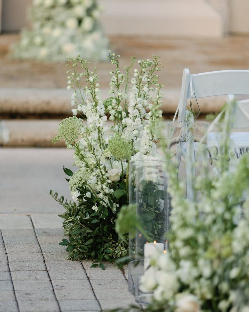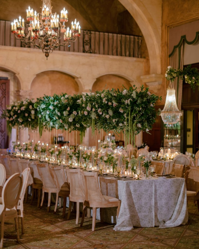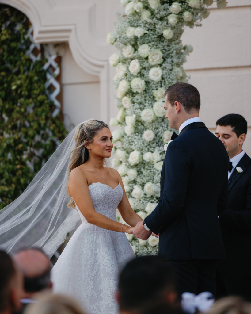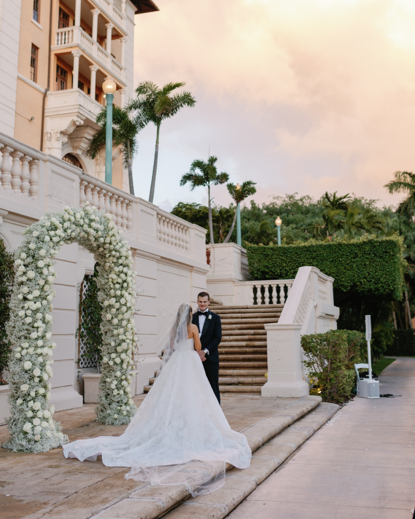 A floral ceremony arch will always be a timeless “yes,” and Taylor and James’ wedding at The Biltmore Miami proved exactly why. The historic venue’s grand architecture set the perfect backdrop for a lush display designed by Petal Productions who transformed the space into a romantic garden scene. The floral arch framed the couple beautifully as they exchanged vows, adding both softness and grandeur to the ceremony setting.