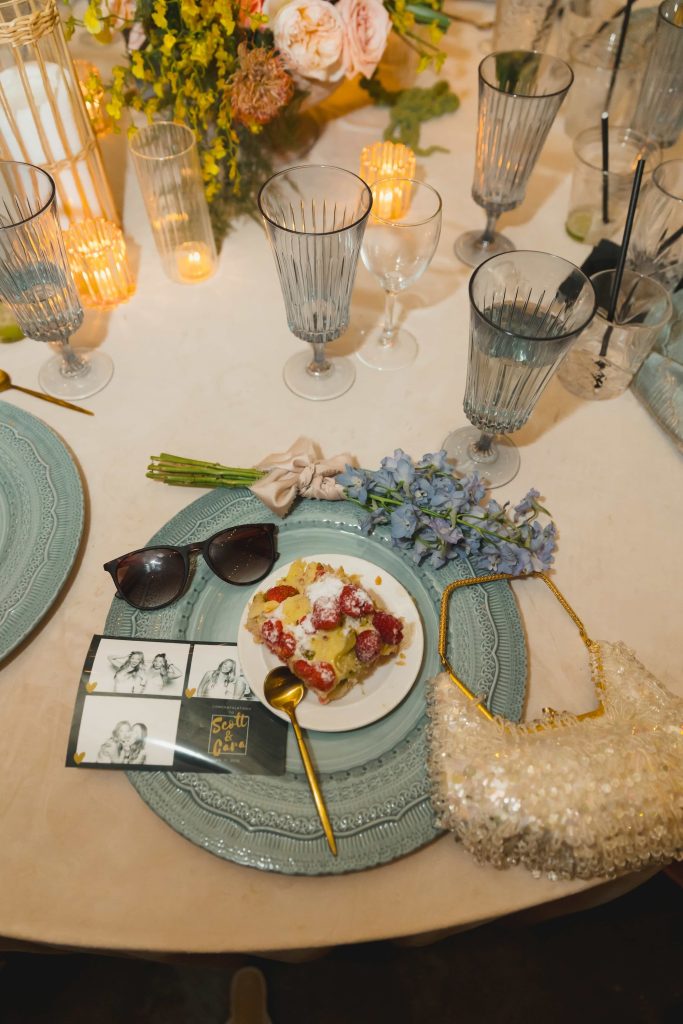 One of the most unforgettable highlights came in the form of dessert. Instead of a traditional wedding cake, Cara and Scott chose a beautifully crafted mille-feuille by Gabriela Bergoderi. In a playful and personal twist, the two assembled the delicate layers together in front of their guests—transforming the moment into an interactive experience that was as entertaining as it was elegant. It quickly became a focal point of the evening, blending culinary artistry with a touch of fun that perfectly reflected their personalities.