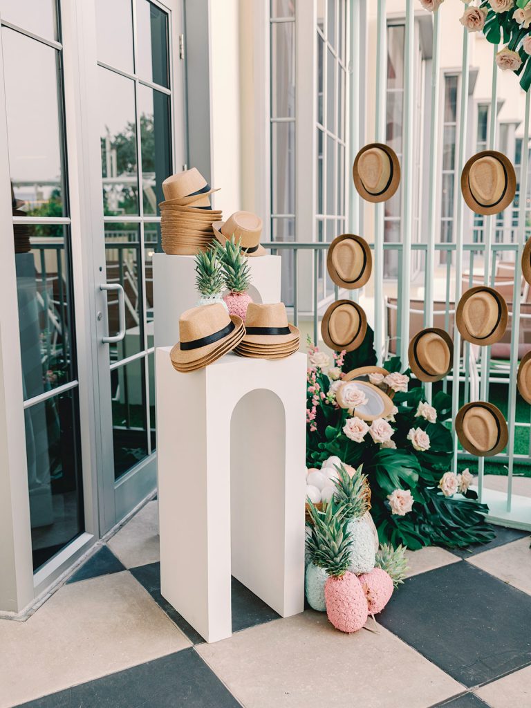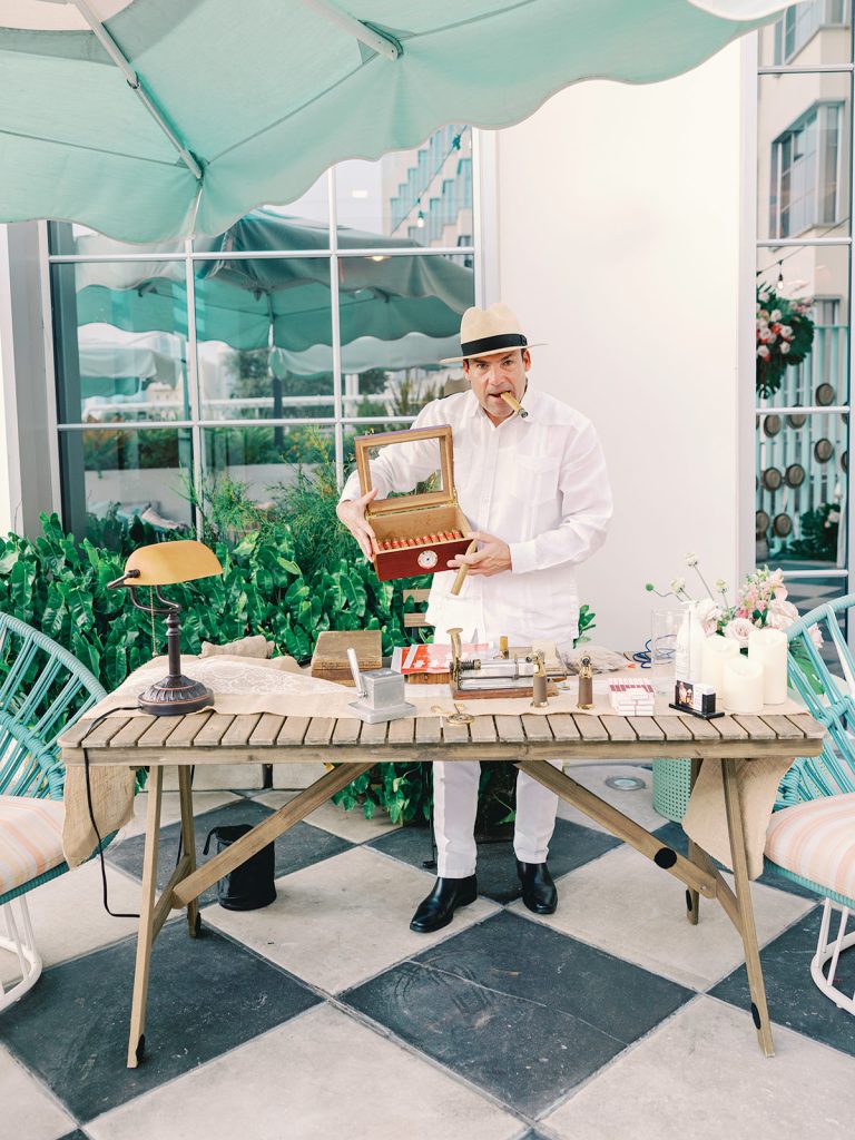 Festivities kicked off with a chic welcome party at Strawberry Moon, where guests enjoyed a glamorous rooftop soirée overflowing with party favors. Floating letters in the pool set an iconic scene, complemented by a stylish cigar bar and a one-of-a-kind hat bar.